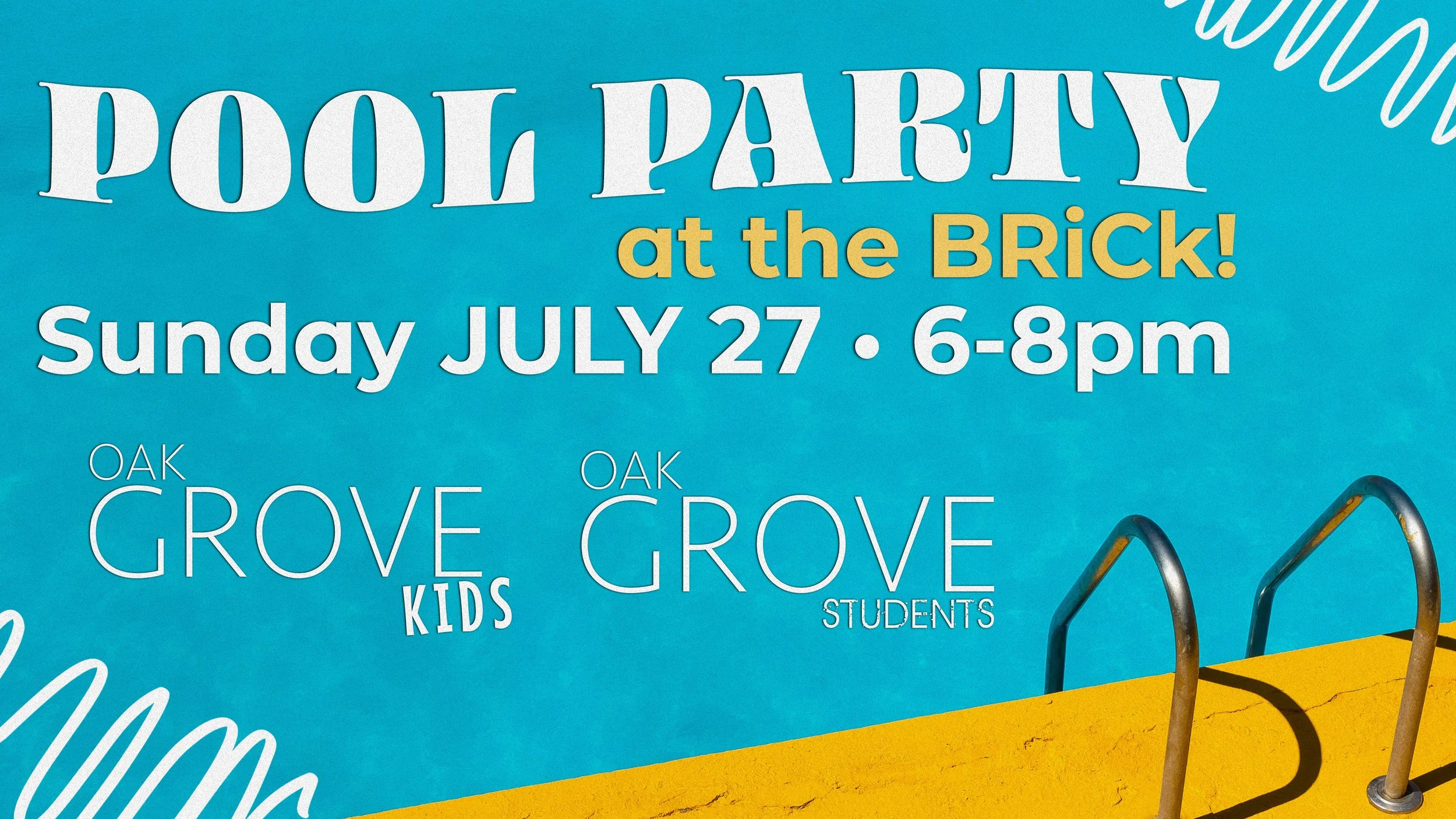 Back to All Events Summer Pool Party Sunday, July 27, 2025 6:00 PM 8:00 PM Burleson Recreation Center (The BRiCk) 550 Northwest Summercrest Boulevard Burleson, TX, 76028 United States (map) Google Calendar ICS In true summer fashion, Oak Grove Kids and Oak Grove Students are hosting a pool party at the BRiCk on Sunday JULY 27 from 6-8pm. Bring the family and join us for a fun time swimming and hanging out with friends and church family!See you there! Let us know you are coming!